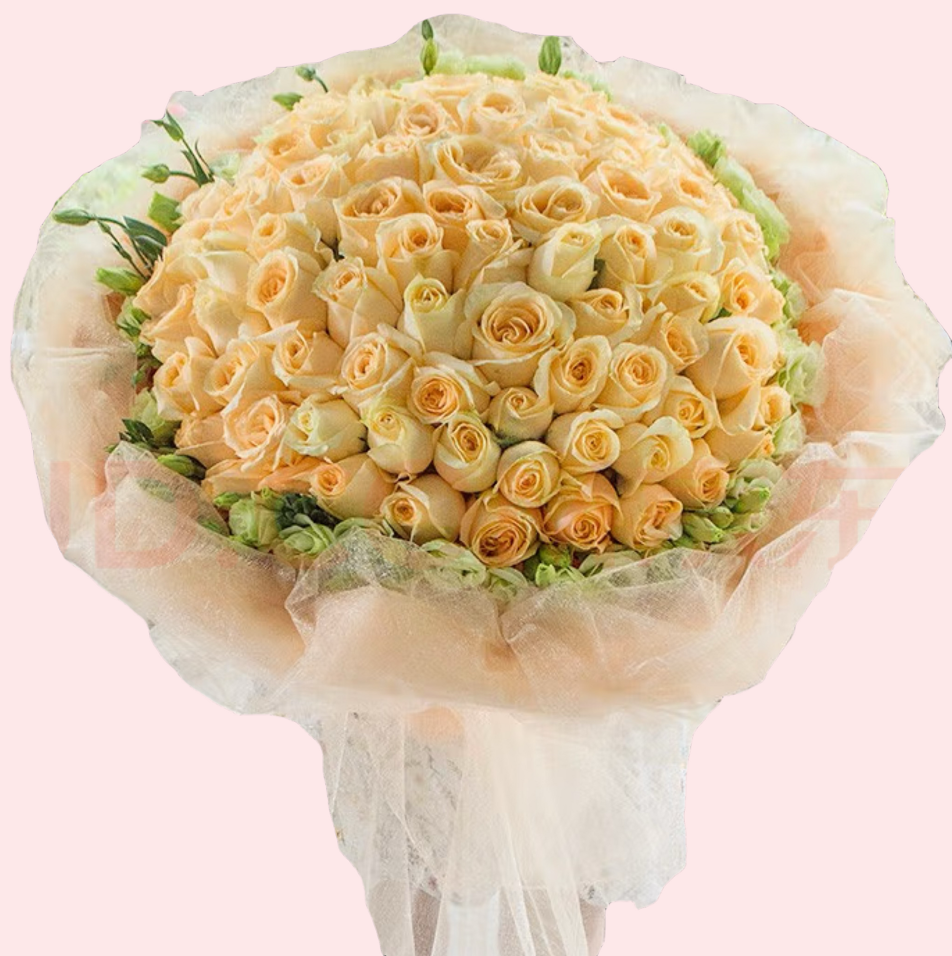 以這束 99枝香檳玫瑰花束 傳遞你最深情的愛意與承諾。每一枝香檳玫瑰都象徵著純潔、優雅與永恆的愛,淡雅的奶油桃色調,散發高貴氣質,為您帶來一場視覺與心靈的浪漫饗宴。