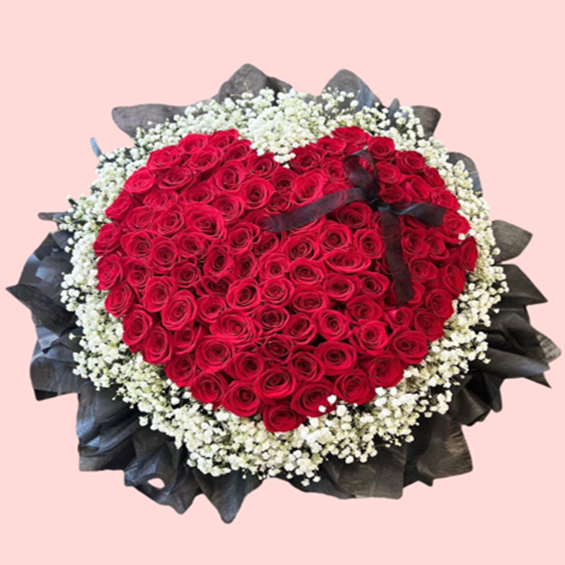 99朵紅玫瑰,是對摯愛最深情的承諾,代表「天長地久、長長久久」的愛戀。此款花束精心打造為心形設計,不僅花語動人,更在視覺上帶來震撼與感動。