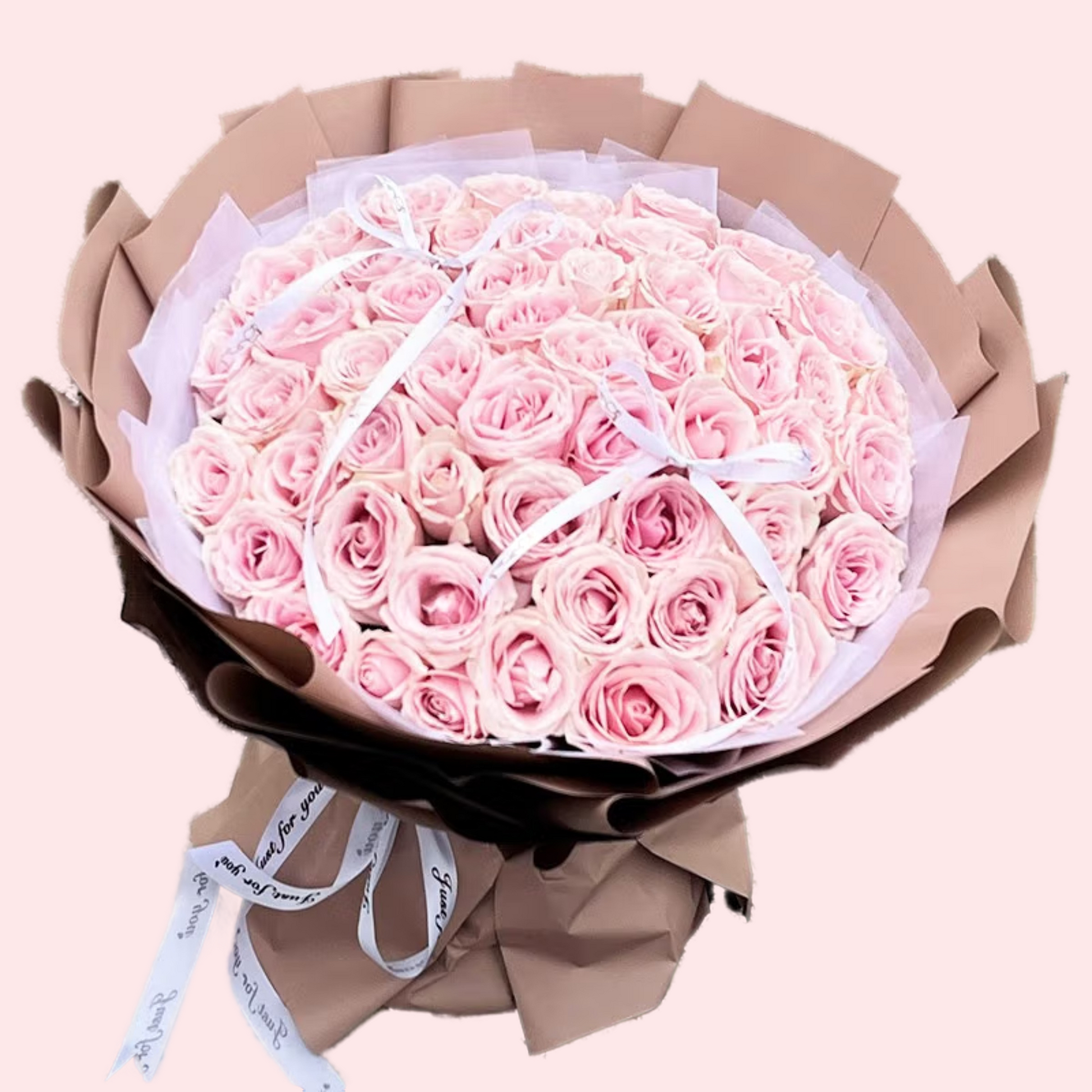 這款花束選用 99朵粉嫩玫瑰 精心排列,層層圓滿如愛的漩渦,每一朵都是對摯愛的低語。粉紅玫瑰象徵浪漫與珍惜,99朵的數量則代表「天長地久,長相廝守」。